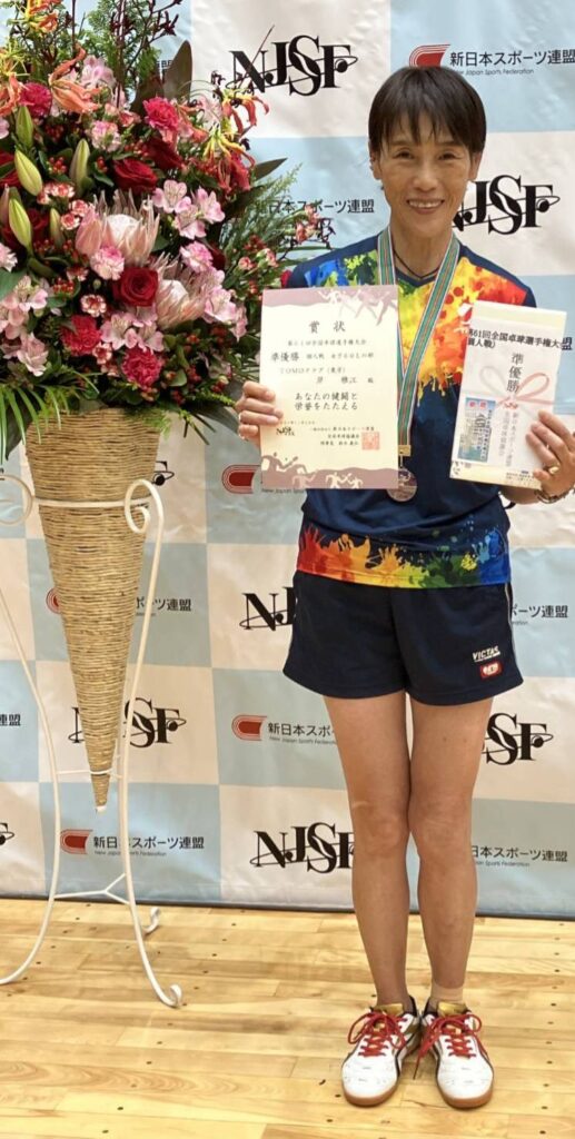 先日、長野県で開催された新日本スポーツ連盟主催の「第61回全国卓球選手権大会 年代別の部」に出場した、